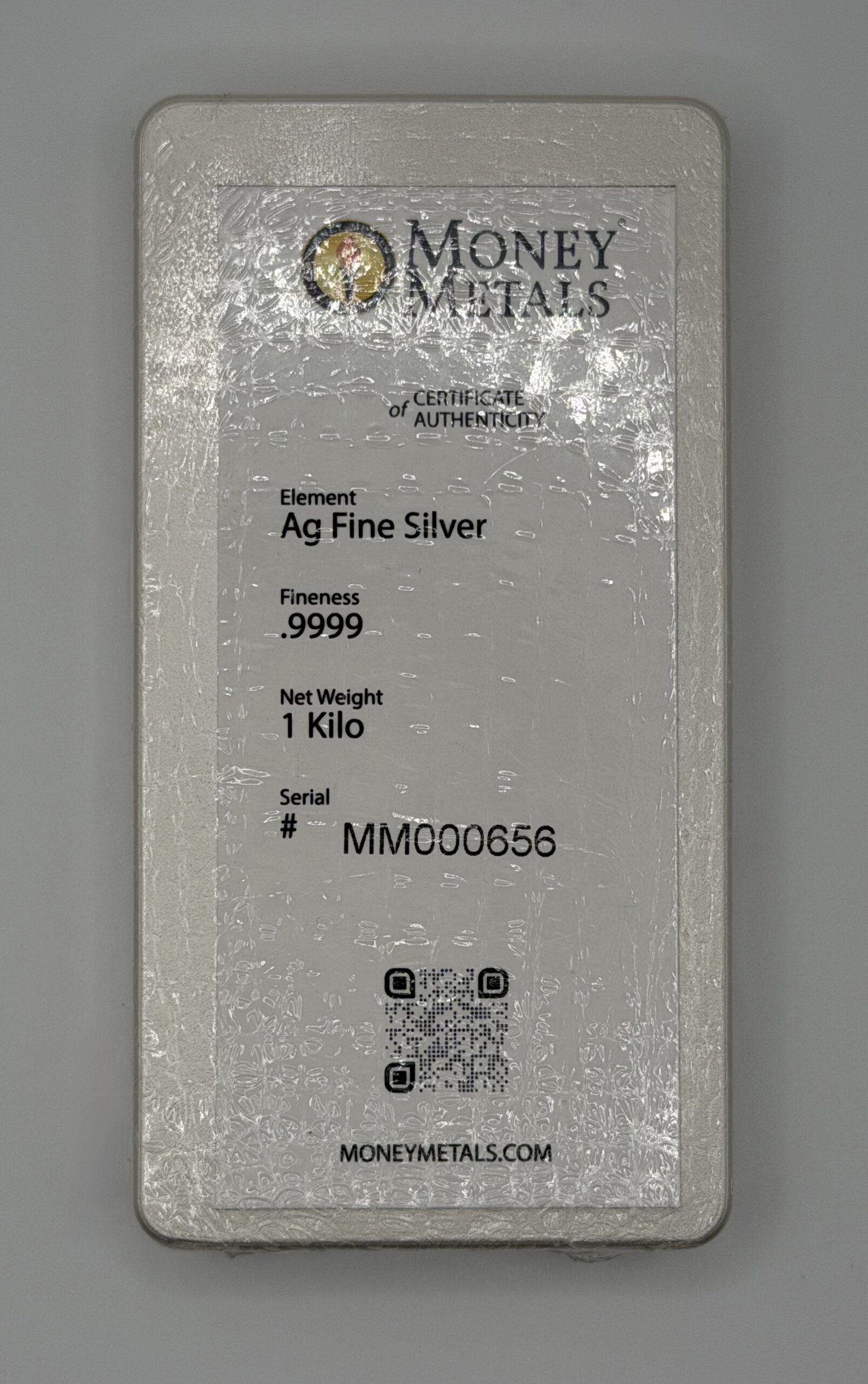 Be the first to review “Money Metals 1 Kilo Cast Silver Bar (Sandblasted Finish), .9999 Pure”